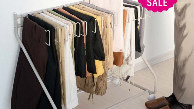 【80%OFFクーポン利用で2400円】スラックスハンガー 大容量 20本掛け スイング式 キャスター付き 押入れ収納 コンパクト クローゼット収納 ズボンハンガー ボトムスハンガー スリム 衣類収納 タオル掛け ハンガー 室内干し 部屋干し f-00009の紹介記事です。